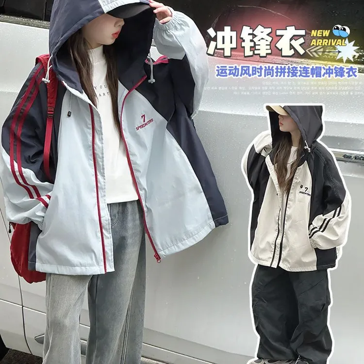 女童外套秋季#2025新款冲锋衣秋装洋气中大童儿童连帽休闲外穿上衣#女童冲锋衣#时髦洋气#时尚穿搭